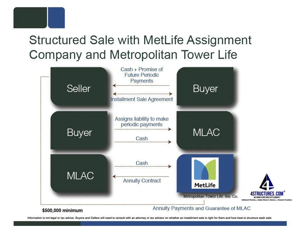 1. Metropolitan Tower Life Insurance Company  (“Metropolitan Tower Life” or “MetLife”) offers a fully domestic structured sales solution through select brokers and agents, including John Darer of 4structures.com LLC. The Metropolitan Tower Life product allows for business and real estate sales to be paid out in periodic payments, the obligation for which will be transferred, by the buyer, to MetLife Assignment Company, Inc. (MACI), which is domiciled in Delaware. MetLife Assignment Company will in turn purchase an annuity from Metropolitan Tower Life Insurance Company to fund the future obligation to the seller. Metropolitan Tower Life also guarantees the performance of MACI. Metropolitan Tower Life Tower Structured Installment Sale solution is now available in all 50 states!